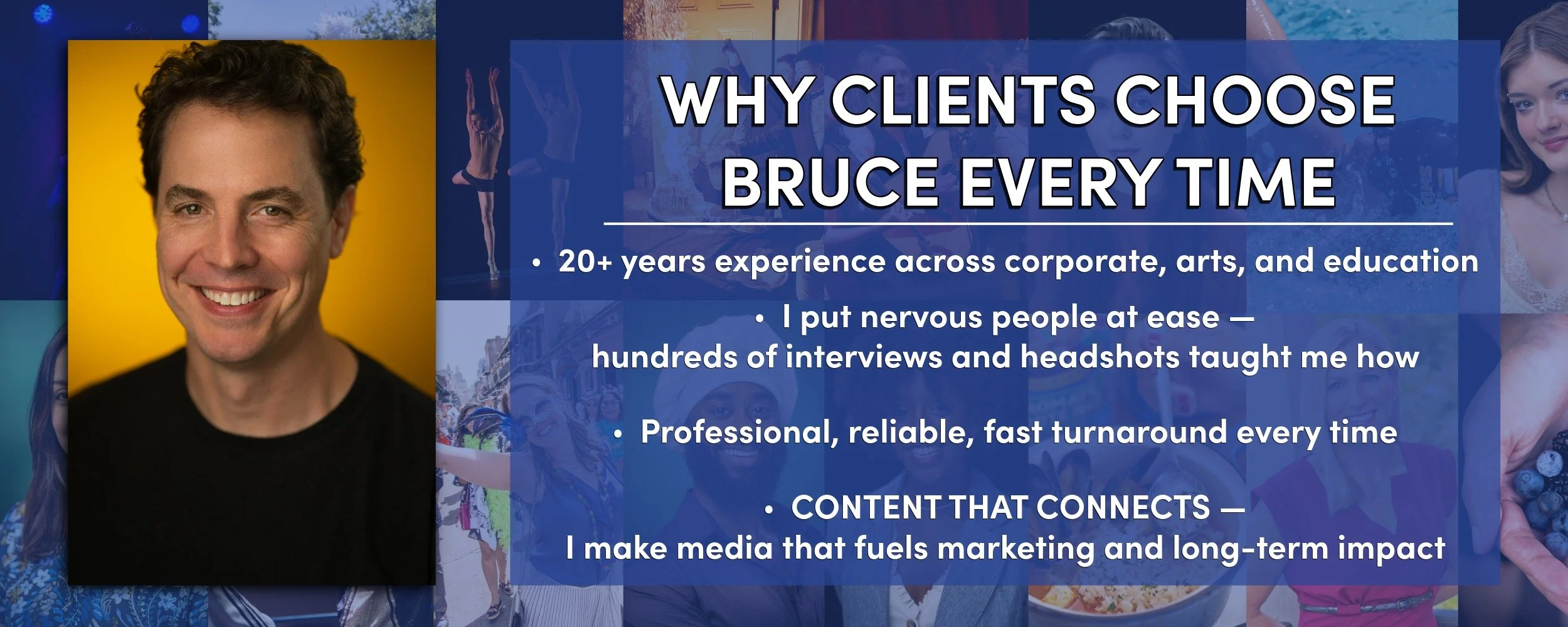 “We have been fortunate over the last ten years to be able to work with Bruce France. Time and time again, he consistently goes above and beyond for our nonprofit organization. Bruce’s time, care and dedication in capturing high quality video of our tuition-free dance education programs and Main Stage Season of dance have enabled us to provide vividly powerful stories and messaging to our audience and funders, and further supports our programs’ impact in the community.”