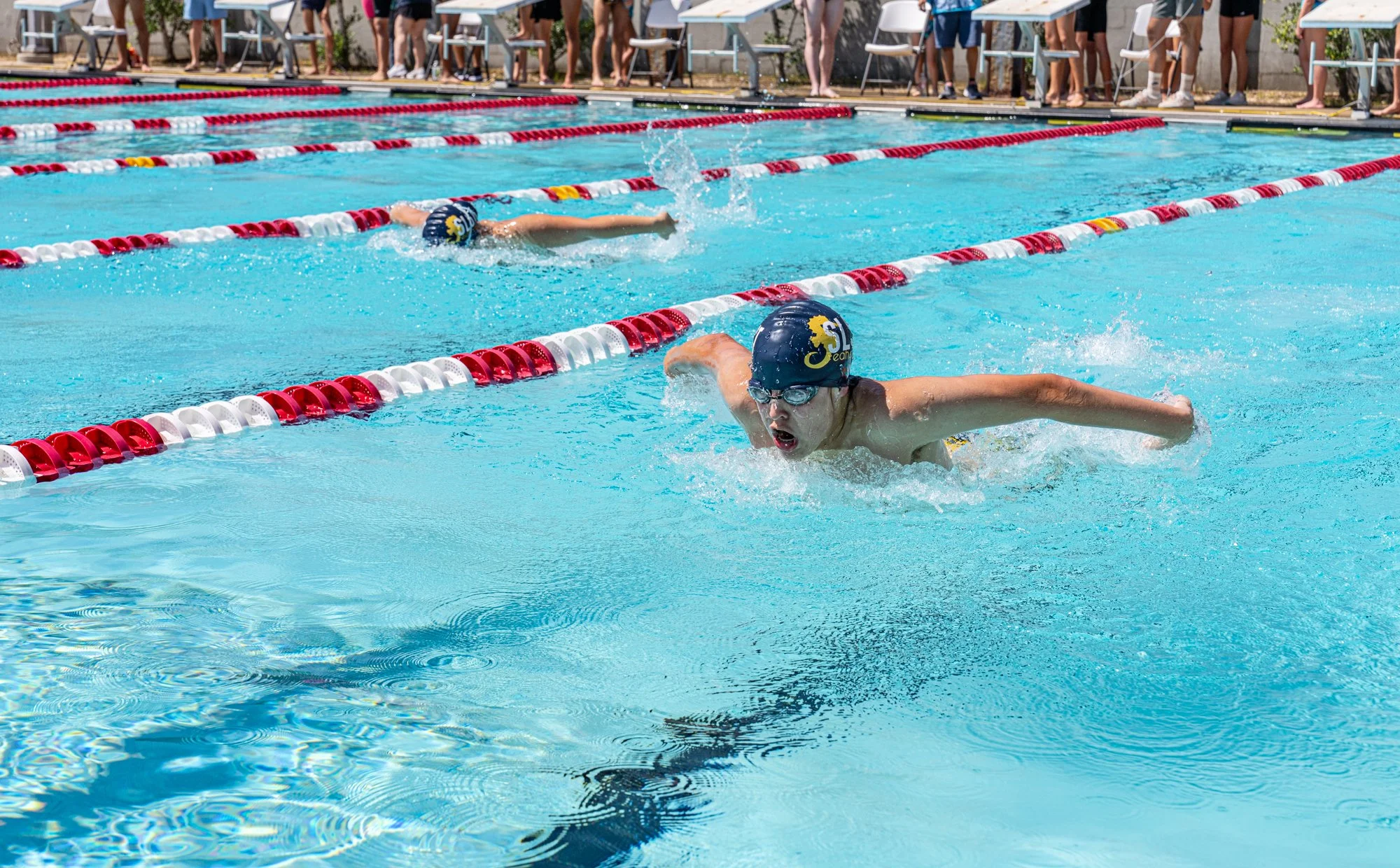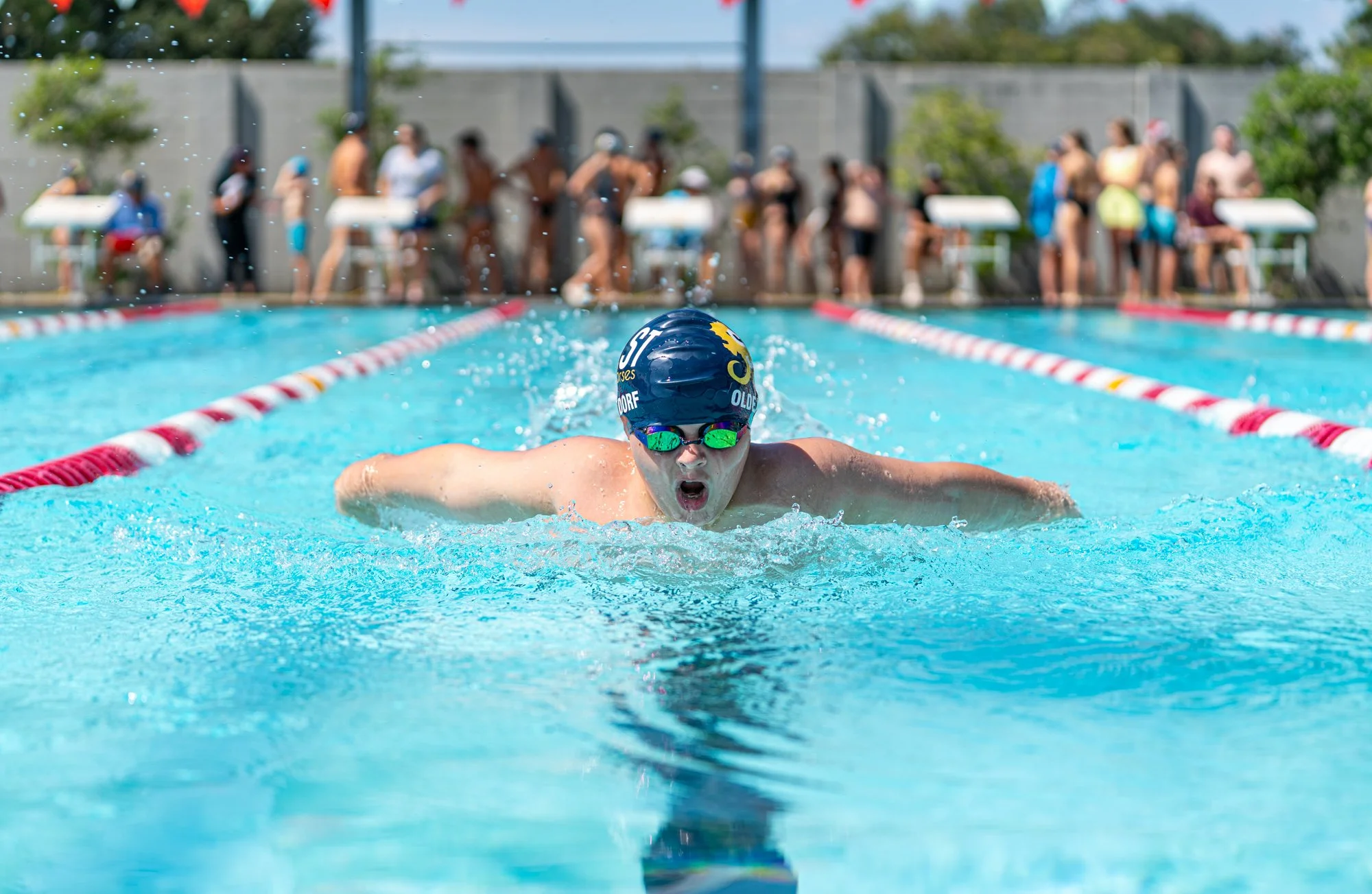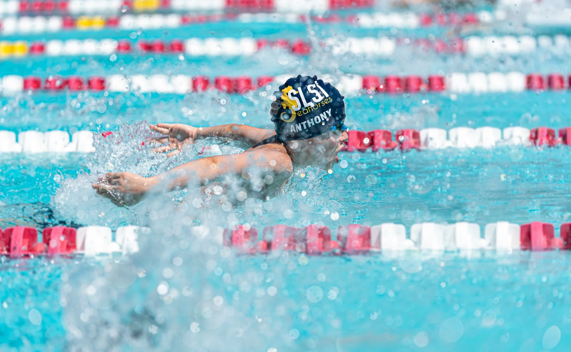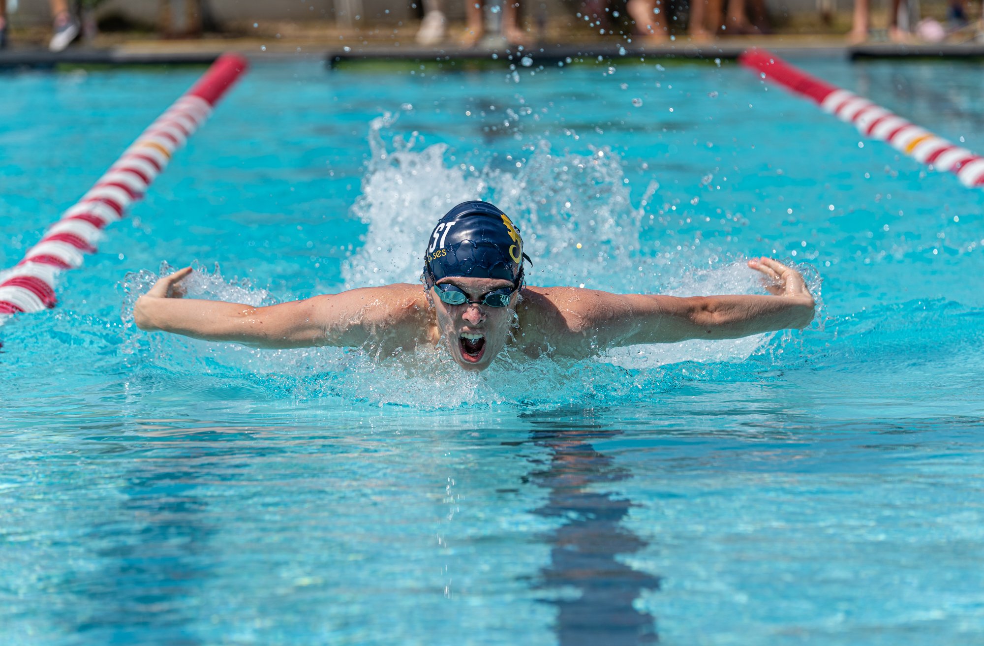 My son has been a competitive swimmer for several years now, both with his school and his club team. I love being able to capture him and his teammates in motion as they glide through the pool much faster than I ever could. Being able to freeze these kinetic moments allows us to appreciate the effort, endurance and elegance these athletes bring to their competitions.